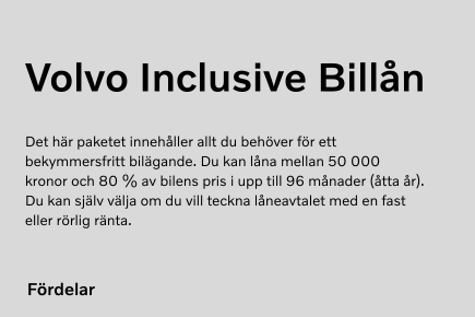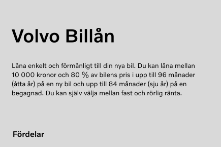 Köpa, låna eller leasa? När du hittat rätt bil ska du också välja hur du vill finansiera den. Vi hjälper dig att hitta en lösning som passar just din livstil och ekonomi. Allt för att göra ditt liv med bilen så smidigt som möjligt.
